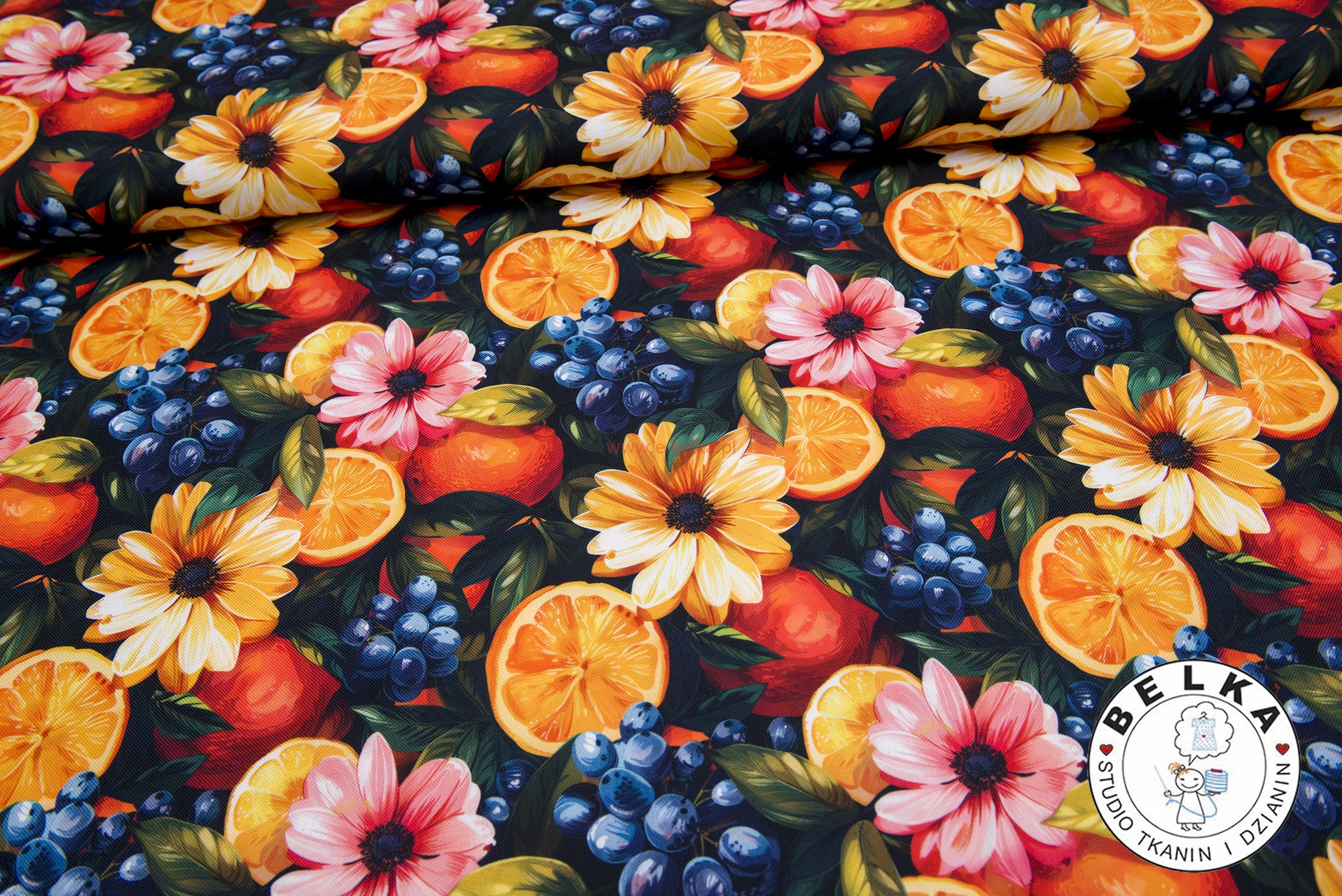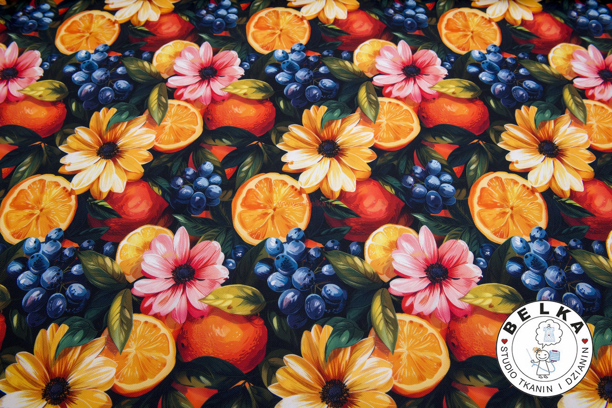 TKANINA WODOODPORNA KWIATY I WINOGRONA