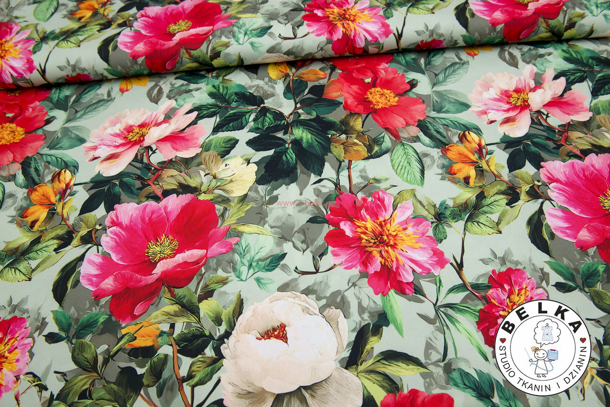 TKANINA WODOODPORNA KWIATY NA MIĘCIE