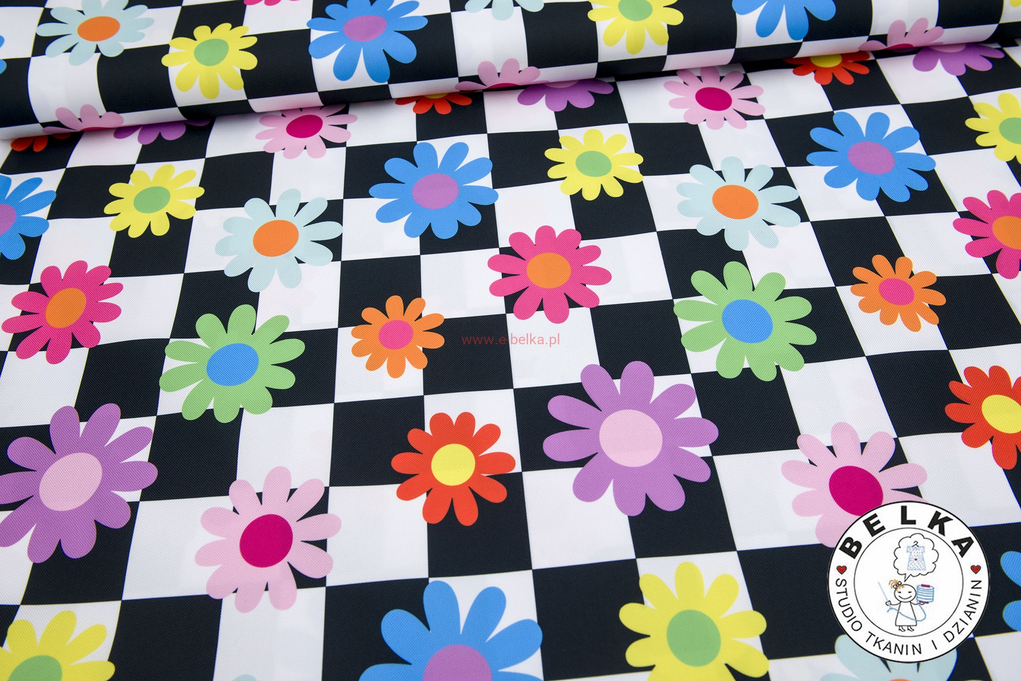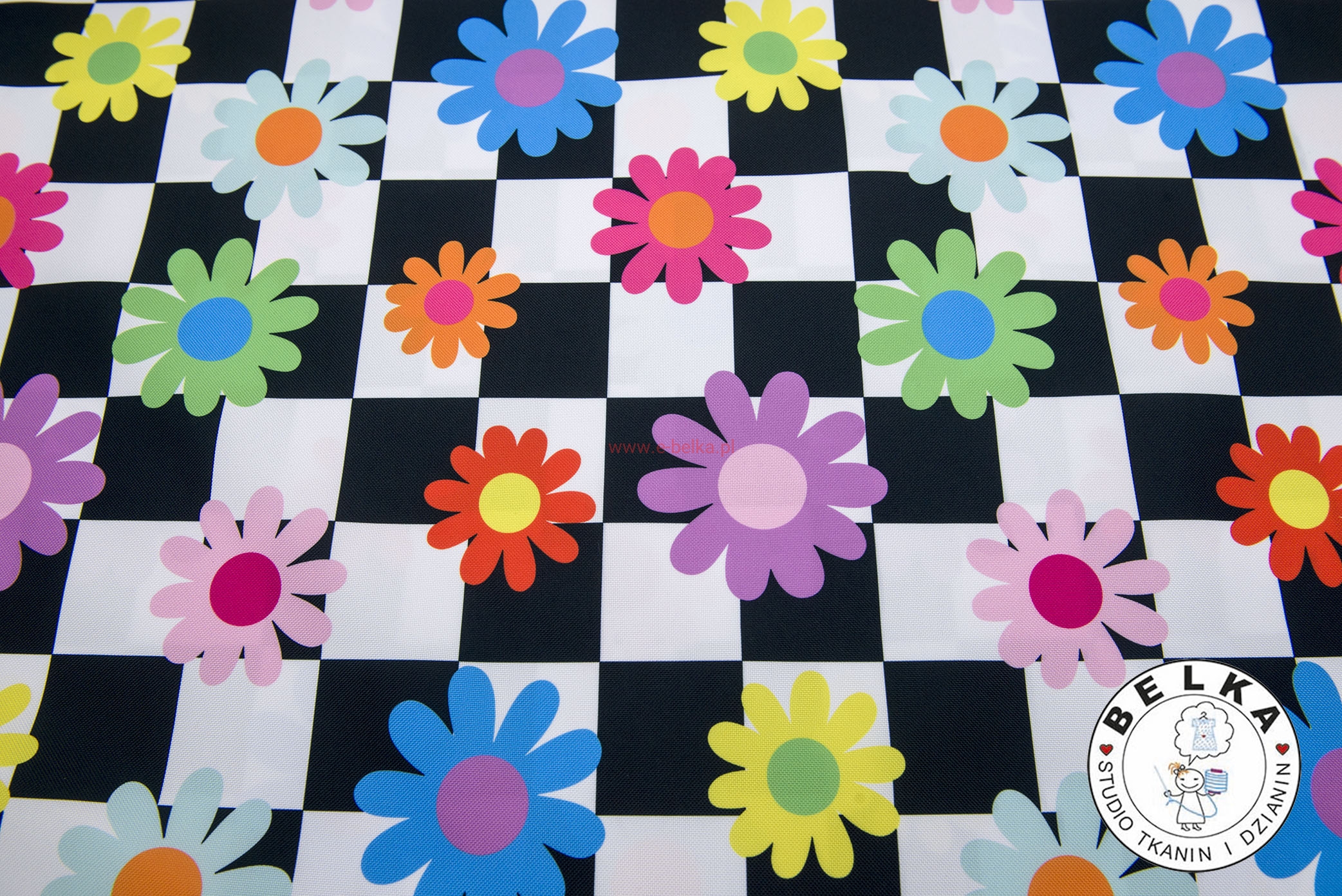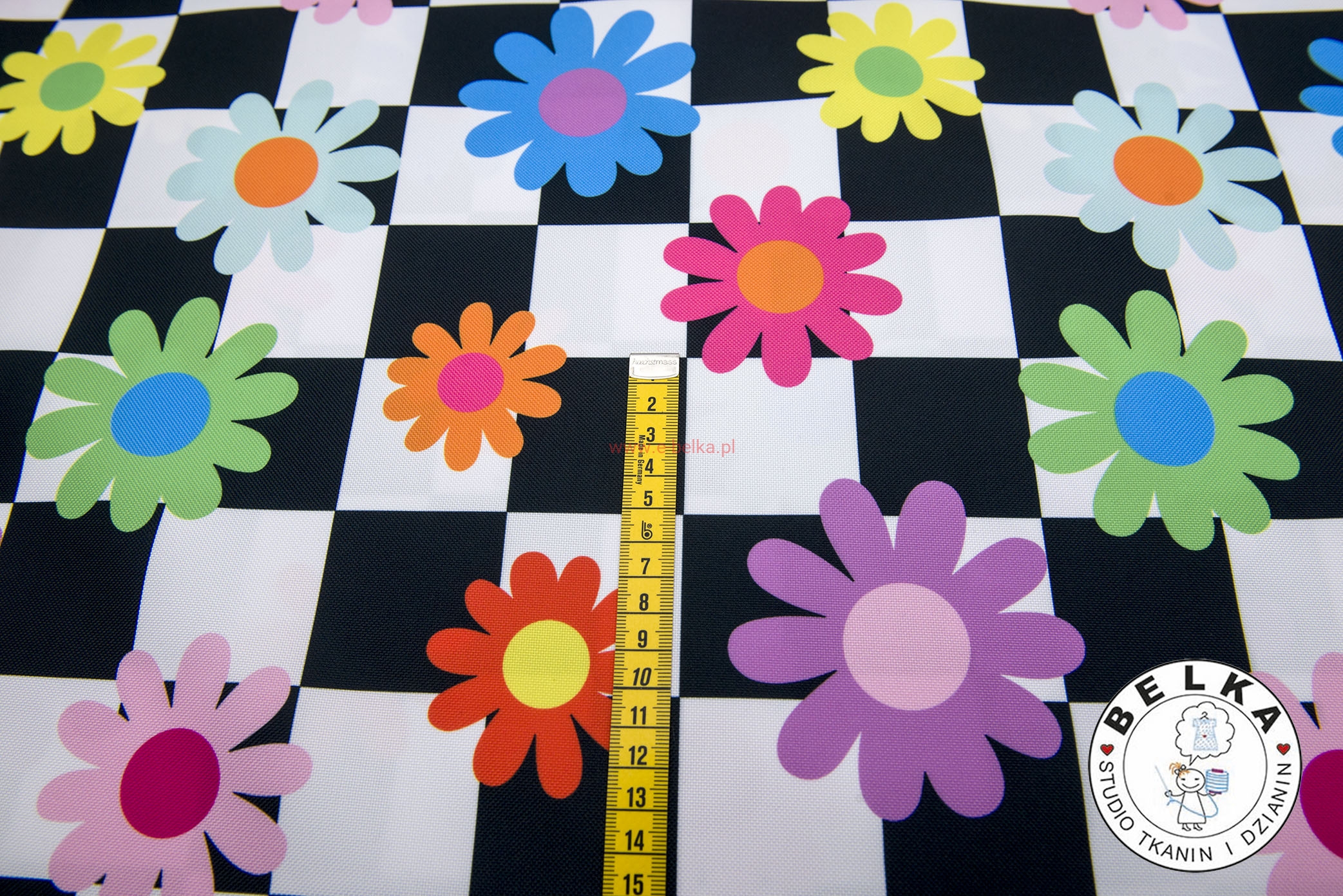 TKANINA WODOODPORNA SZACHOWNICA KWIATY